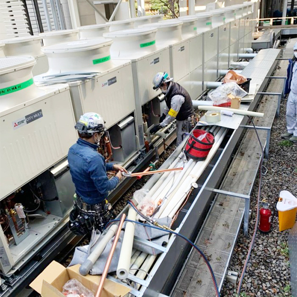 当社は主に都内近郊のビル・マンション・ホテルなどの「空調設備工事」をメインに業務を行なっています。空調ひとつで「住まい・会社・施設」など、全ての住環境が向上するといっても過言ではありません。「空調の調子が悪い」「定期メンテナンスをしてほしい」等、お客様のニーズに合わせたご提案をさせて頂き、「快適・安全」に過ごして頂けるように責任を持って対応しております。